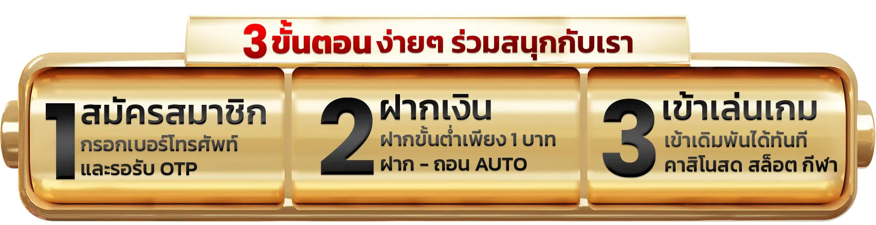 ตอบ : - กรอกข้อมูลผ่านหน้าเว็บ ใช้เบอร์โทรศัพท์และบัญชีธนาคาร ยืนยันตัวตน รับ username/password เริ่มเดิมพันได้ทันที